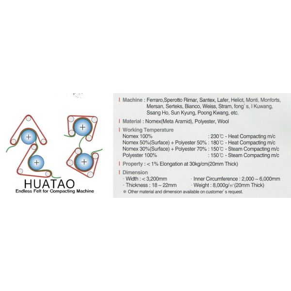 Huatao 3m Width Compacting Machine High Temperature Resistance Nomex Felt Belt